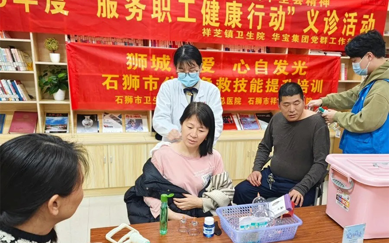 下午15時(shí)起,職工們陸續(xù)來(lái)到義診區(qū)域。祥芝鎮(zhèn)衛(wèi)生院專業(yè)醫(yī)護(hù)團(tuán)隊(duì)耐心接診,為職工提供中醫(yī)拔罐、艾灸調(diào)理等項(xiàng)目,并開(kāi)展職工專項(xiàng)篩查服務(wù)和醫(yī)療科普。許多職工表示:“平時(shí)工作忙,很少專門去醫(yī)院檢查,這樣的活動(dòng)太貼心了!”